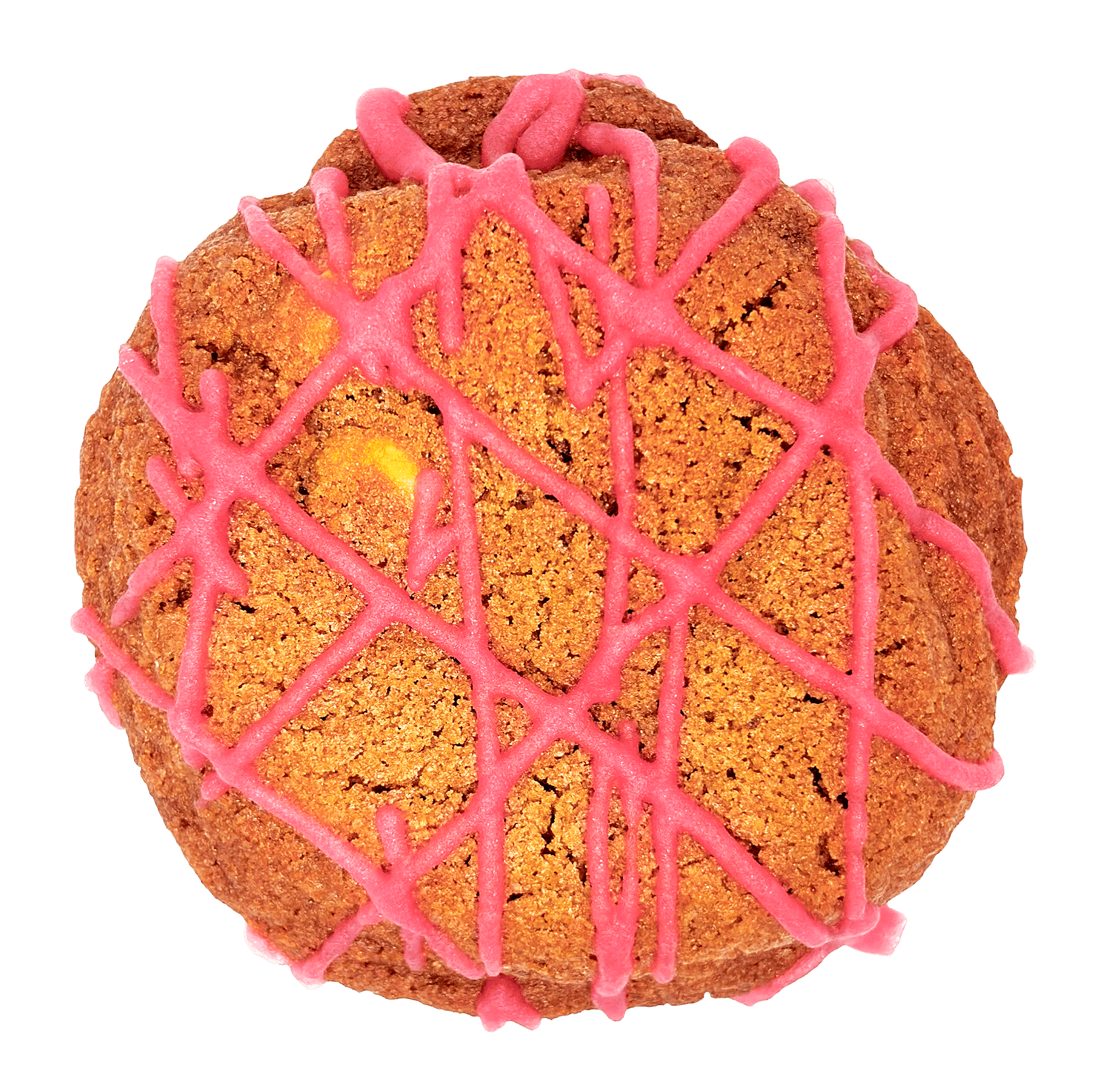 Trpak, sladak i neodoljiv. Ovaj kolačić punjen je pravim malinama, vrhunskom bijelom čokoladom i preliven glazurom od malina.